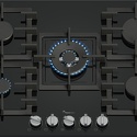 Газовая варочная панель PPQ7A8B90 – идеальный вариант для каждой . Она хорошо вписывается в любое помещение и устанавливается на любой плоской поверхности благодаря современному продуманному дизайну.Рабочая поверхность прибора изготовлена из закаленного стекла HardGlass, которое не бьется, не подвержено механическим воздействиям и легко чистится.Удобство варочной панели PPQ7A8B90 заключается в возможности готовить одновременно несколько разных блюд. Каждая из 5 конфорок имеет различную мощность. Кроме того, регуляторы подачи газа находятся непосредственно на самой плите и включают конфорки при помощи электроподжига.Каждый регулятор мощности конфорок имеет 9 положений и переключатели поворотного типа. Сама панель оснащена удобными и устойчивыми чугунными решетками для каждой конфорки для удобства в уходе.