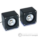 Звуковая схема: 2.0 • Суммарная мощность (RMS): 6 Вт • Материал корпуса колонок: пластик • Частотный диапазон: 200 Гц - 20 КГц • Линейный вход: стерео (mini-jack 3.5мм) • Расположение элементов управления: задняя панель • Количество полос фронтальных колонок: 1 • Магнитное экранирование колонок: есть • Питание: от порта USB • Размеры фронтальных колонок (ШxВxГ): 63x72x57 мм