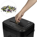 для офиса • уровень секретности 4 • разовая загрузка 145 листов • уничтожает скобы • скрепки • пластиковые карты • емкость корзины 23 л • 496x364x278 мм • вес 11.1 кг