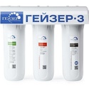 Особенностидля жесткой воды, первая ступень - осадочный фильтр, вторая - фильтроэлемент "Гейзер" для жесткой воды, третья - угольный СВС; пластиковая подводка типа "John Guest" (быстросъемные соединения подводки обеспечивают простую и быструю установку фильтра)