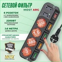 Производитель: Most Модель: ARG 1.6m - Розеток: евро 4 шт, компакт 2 шт - Длина кабеля: 1.6 м - Мощность подключения: 2200 Вт, 10 А - Защита: короткое, перепады, импульсные Описание