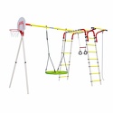 В комплектегимнастические кольца, лестница, трапеция, баскетбольное кольцо, канат, рукоход, качели