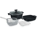 Состав наборакастрюля (24 см), сковорода-гриль (24 см), корзина для фритюра (20 см), решётка для запекания (20 см) и стеклянная крышка