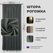 SHTORA.LAND Штора для комнаты 150x270 см Блэкаут рогожка Shtoraland на ленте для крючков, одна портьера для гостиной, спальни, детской. Темно-серый цвет (графит)