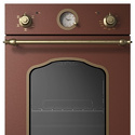 Тип: электрическая • Установка: независимая • Объем: 43 л • Цвет: медь • Дверца: откидная • Конвекция: есть • Гриль: есть • Очистка духовки: традиционная • Подсветка: есть • Количество стекол дверцы духовки: 2 • Мультифункциональная духовка: есть • Количество режимов работы духовки: 6 • Направляющие противней: телескопические • Переключатели: поворотные • Таймер: есть • Часы: есть, циферблат