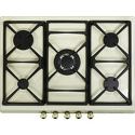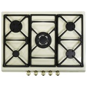 Поверхность: варочная панель • Тип поверхности: газовая • Рабочая поверхность: эмаль • Число конфорок: 5 • Установка: независимая • Газовые конфорки: всего - 5 (1 конфорка "Тройная корона") • Газ-контроль конфорок: есть • Тип управления: механическое • Переключатели: сенсорные • Электроподжиг: есть, автоматический • Размеры: 680x500 мм • Размер ниши для встраивания: 552x470 мм • Цвет: панель - бежевый