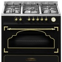 Тип конфорок: газовые • Рабочая поверхность: нерж. сталь • Тип духовки: электрическая • Размеры (ШxВxГ): 900x890x615 мм • Цвет: антрацит • Газовые конфорки: всего - 5 (1 конфорка "Тройная корона") • Газ-контроль конфорок: есть • Объем духовки: 121 л • Конвекция: есть • Гриль: есть • Очистка духовки: традиционная • Подсветка: есть • Количество стекол дверцы духовки: 2 • Телескопические направляющие противеней: есть